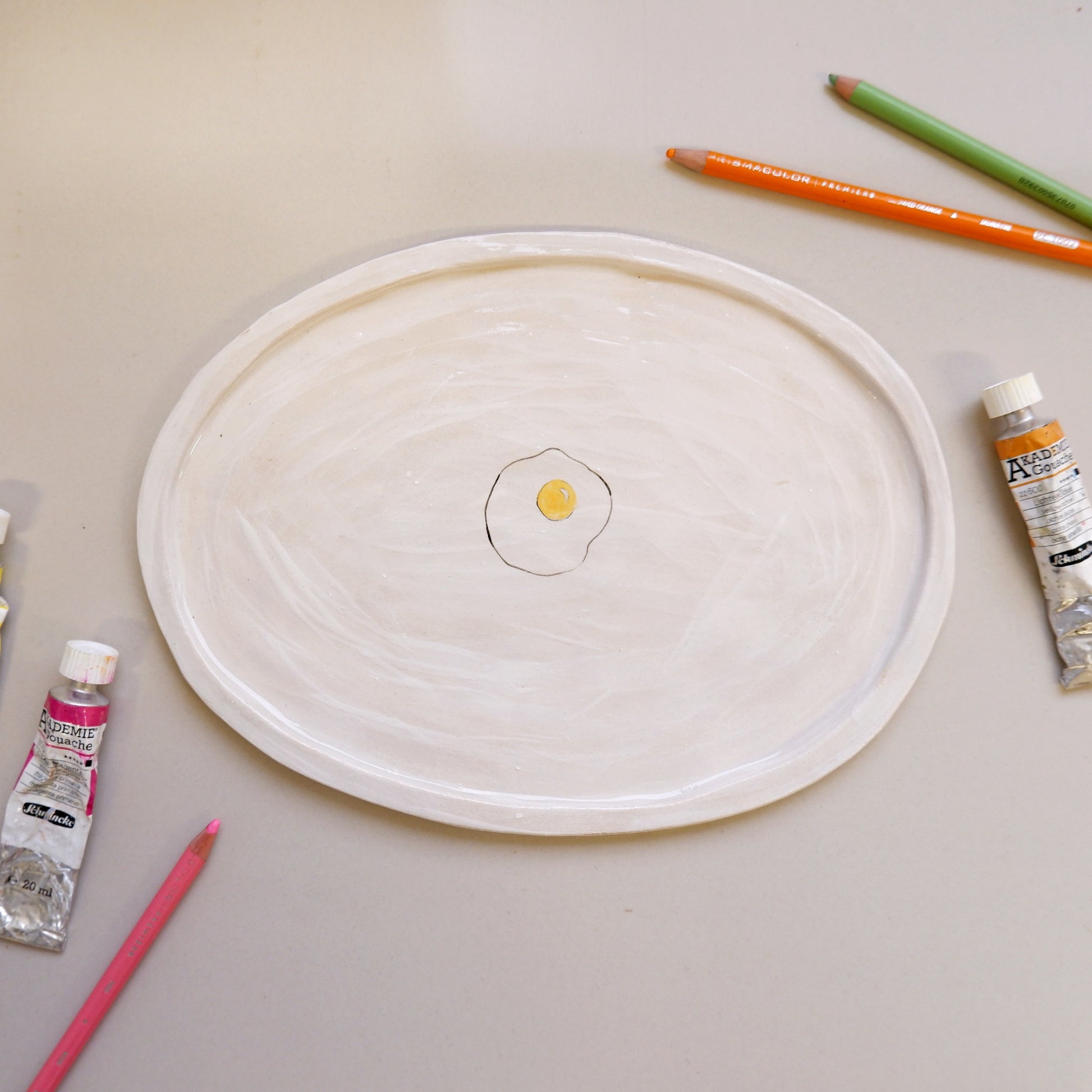 Each palette is rolled and handcarved from creamy stoneware and has a small hand painted detail on the bottom of the palette.