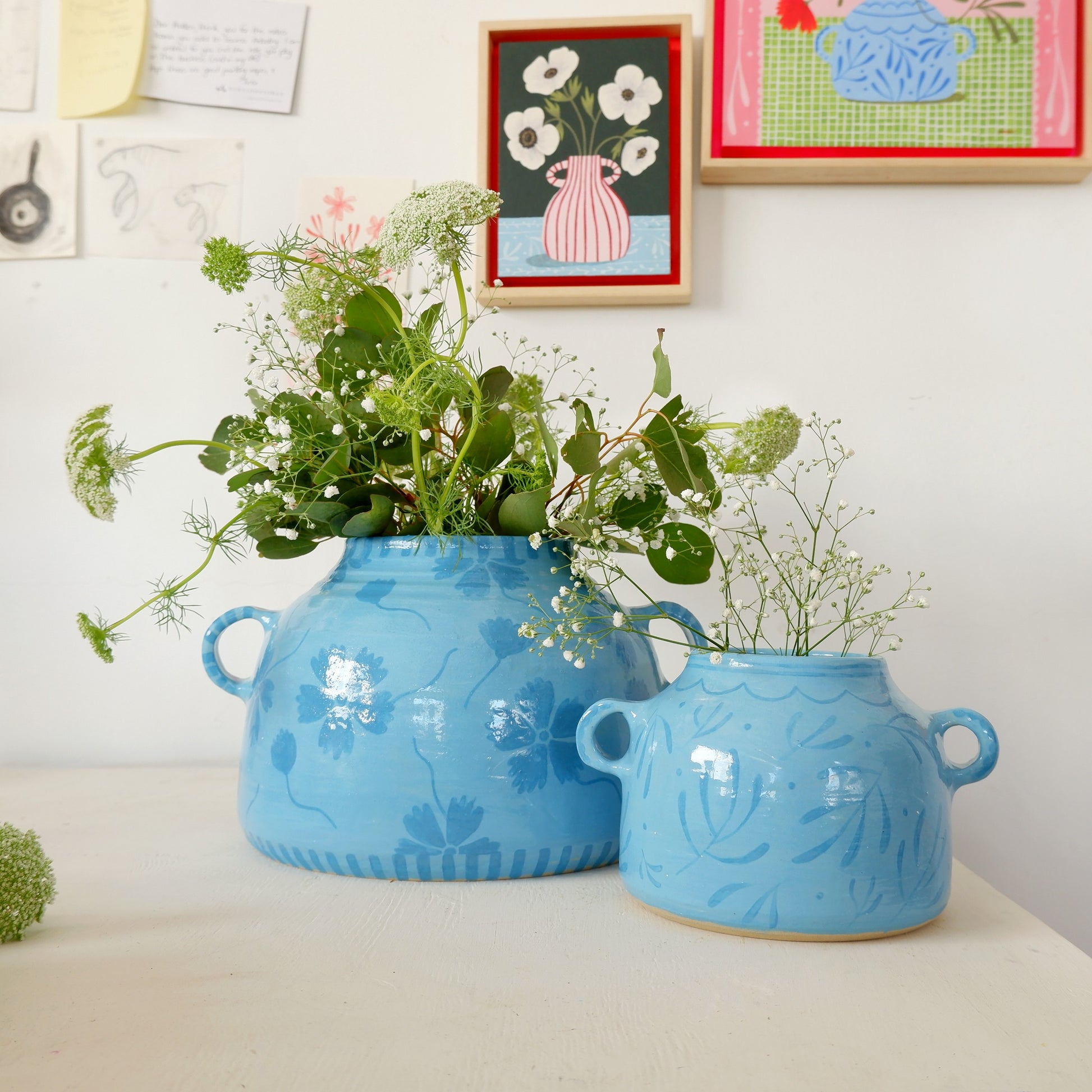 Towards the end of 2023, much transpired; both joyful and heartbreaking, challenging and freeing, and, in the midst of it all, I began to make flower paintings. I worked freely, choosing bold colours at whim, adding patterns and motifs to vases and tablecloths freehand and overall, extending my sketchbook play, outside of my sketchbook.