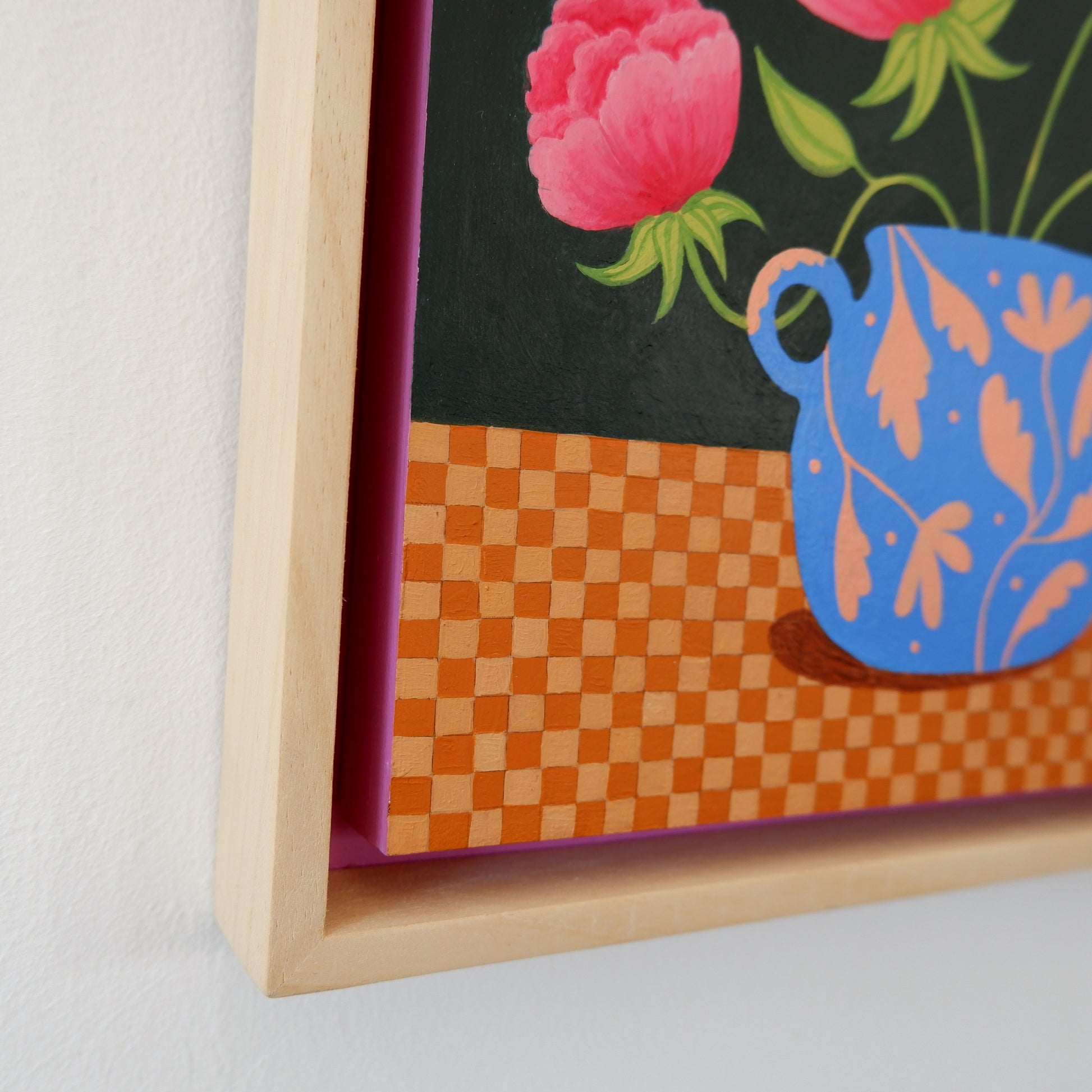 Towards the end of 2023, much transpired; both joyful and heartbreaking, challenging and freeing, and, in the midst of it all, I began to make flower paintings. I worked freely, choosing bold colours at whim, adding patterns and motifs to vases and tablecloths freehand and overall, extending my sketchbook play, outside of my sketchbook.
