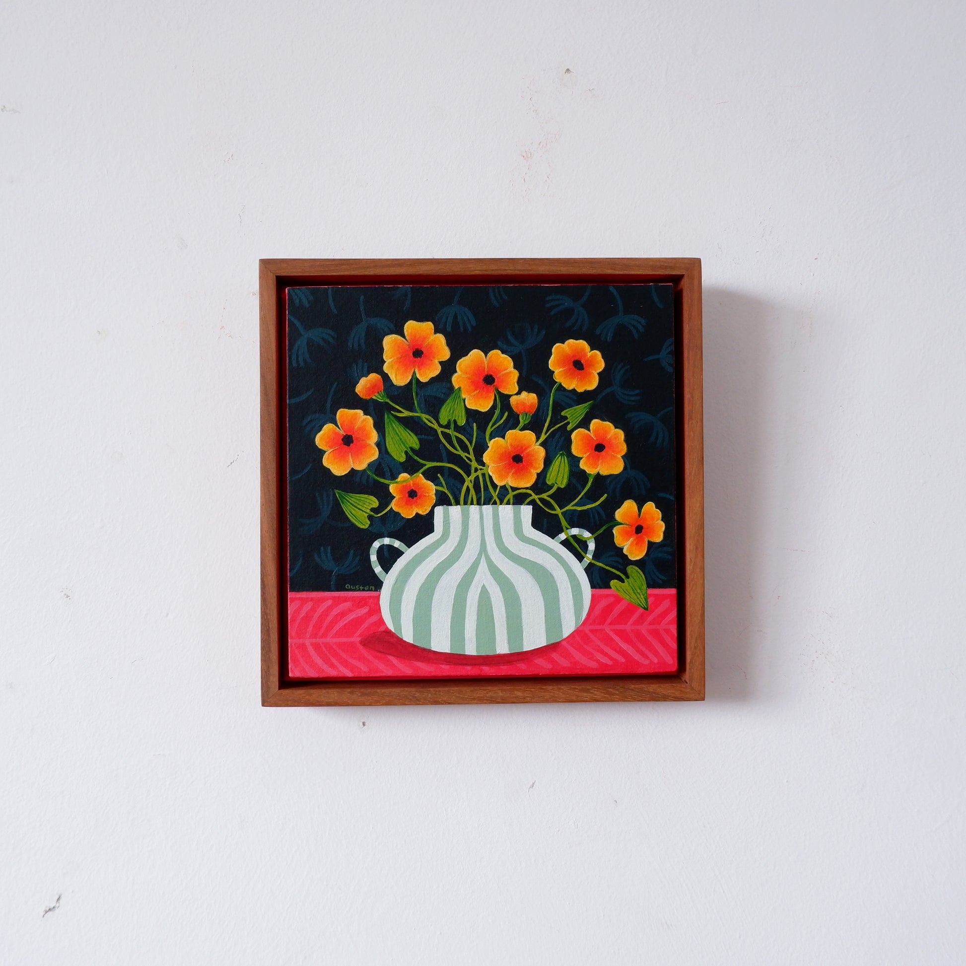 Towards the end of 2023, much transpired; both joyful and heartbreaking, challenging and freeing, and, in the midst of it all, I began to make flower paintings. I worked freely, choosing bold colours at whim, adding patterns and motifs to vases and tablecloths freehand and overall, extending my sketchbook play, outside of my sketchbook.