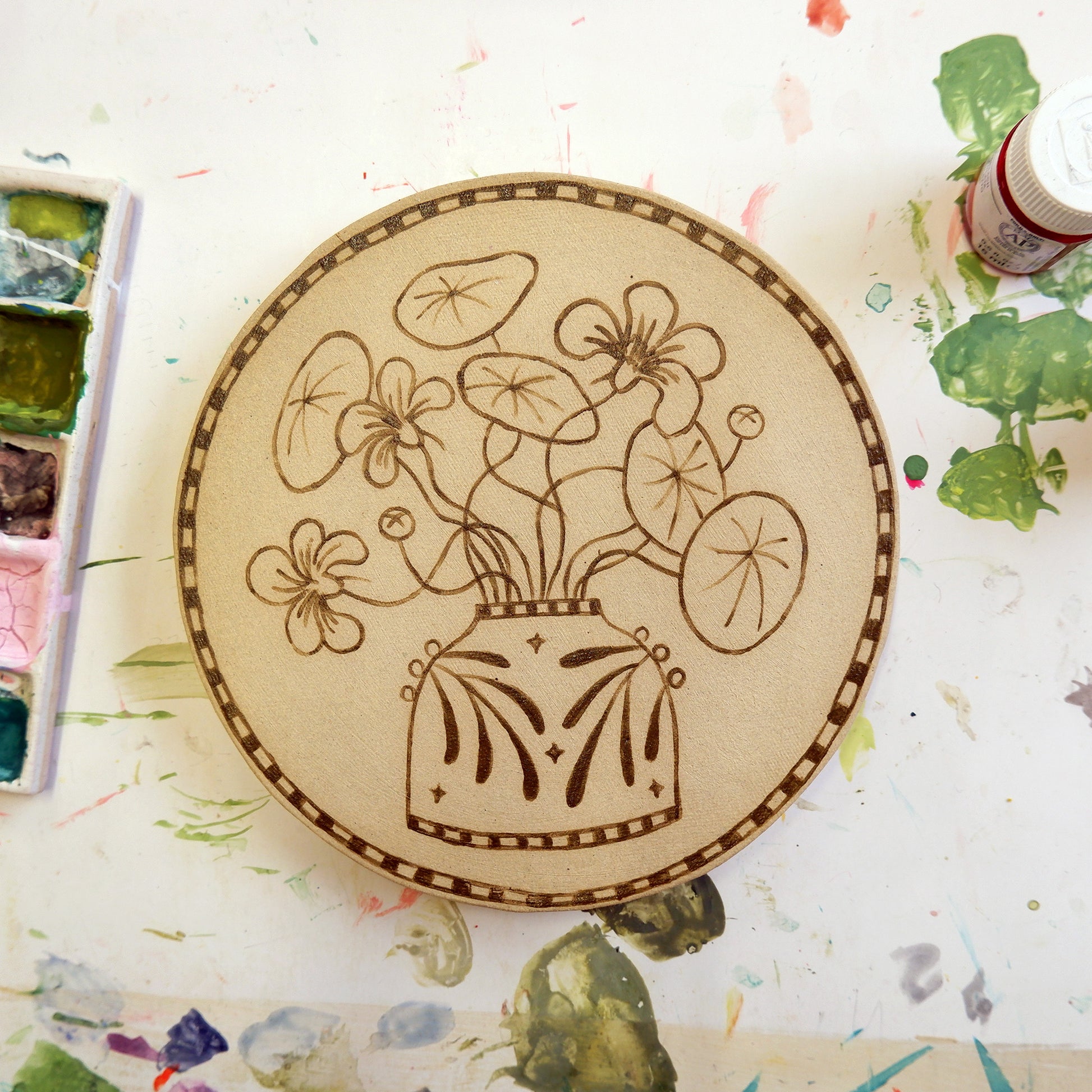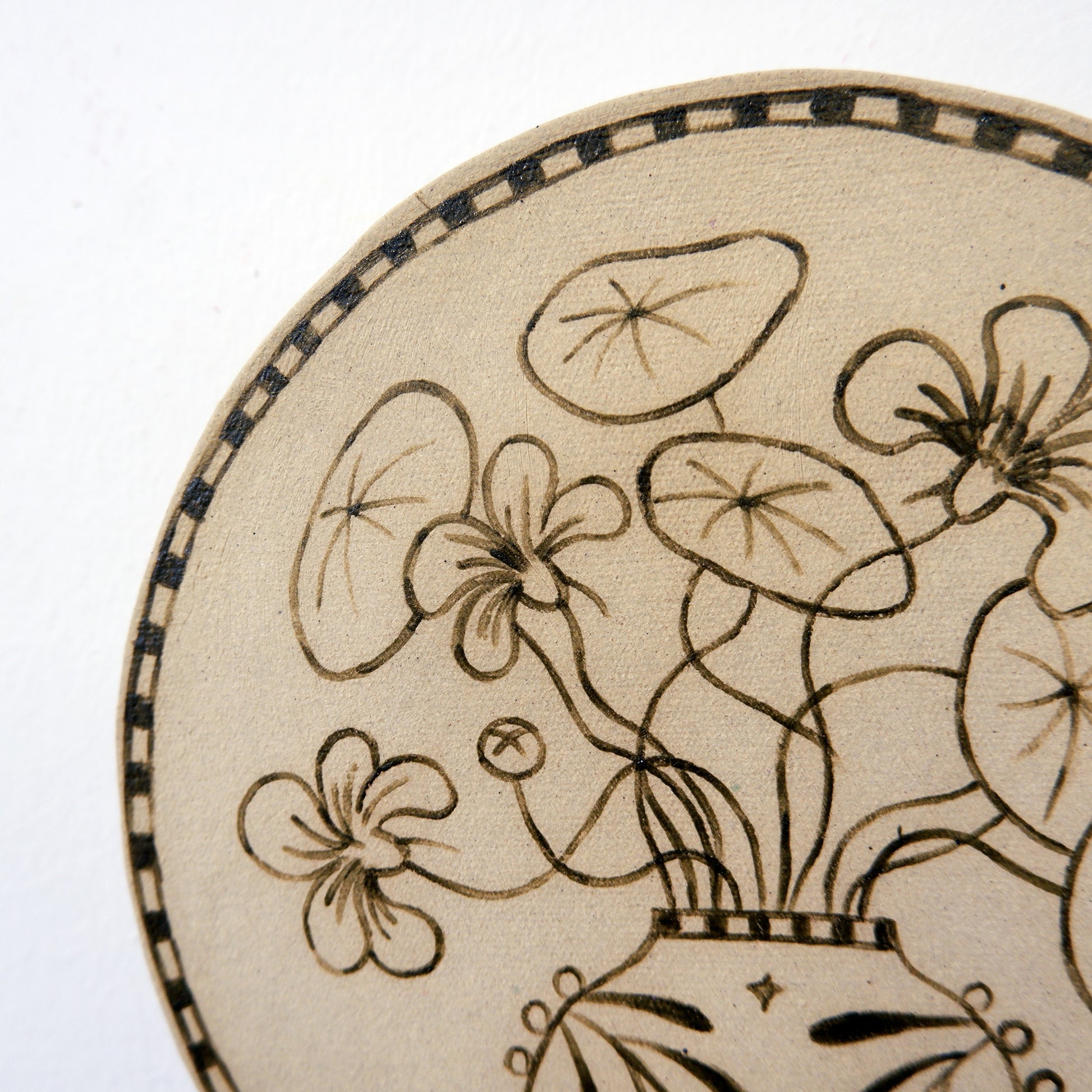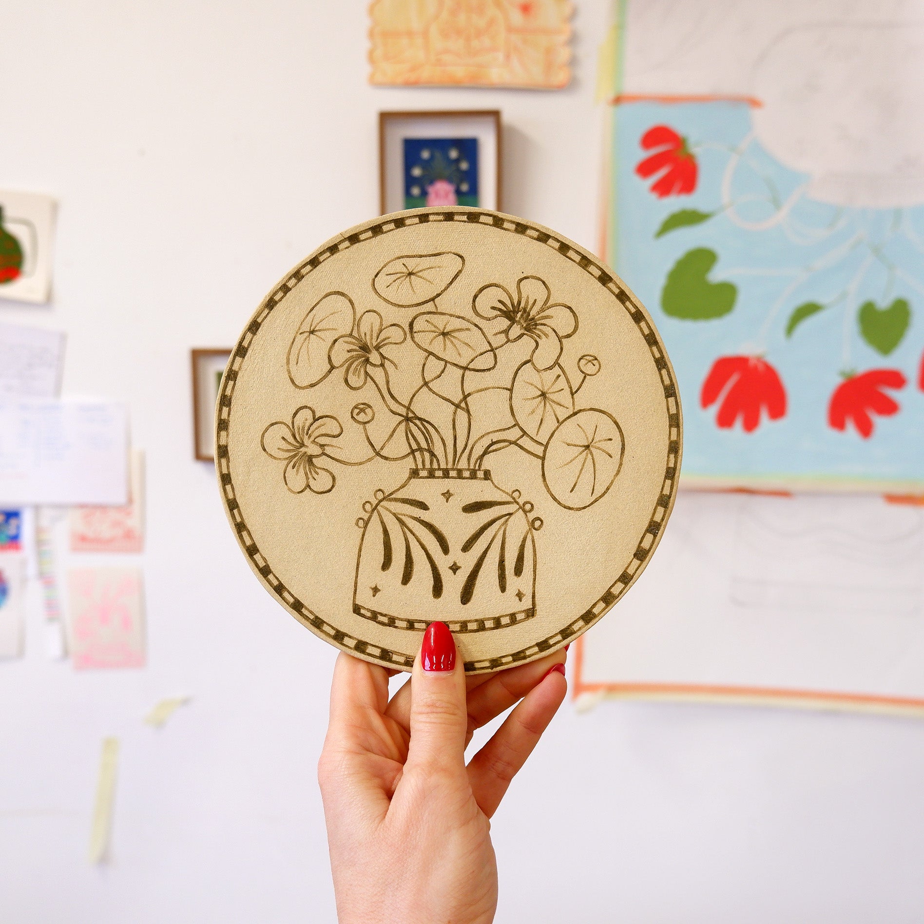 Towards the end of 2023, much transpired; both joyful and heartbreaking, challenging and freeing, and, in the midst of it all, I began to make flower paintings. I worked freely, choosing bold colours at whim, adding patterns and motifs to vases and tablecloths freehand and overall, extending my sketchbook play, outside of my sketchbook.
