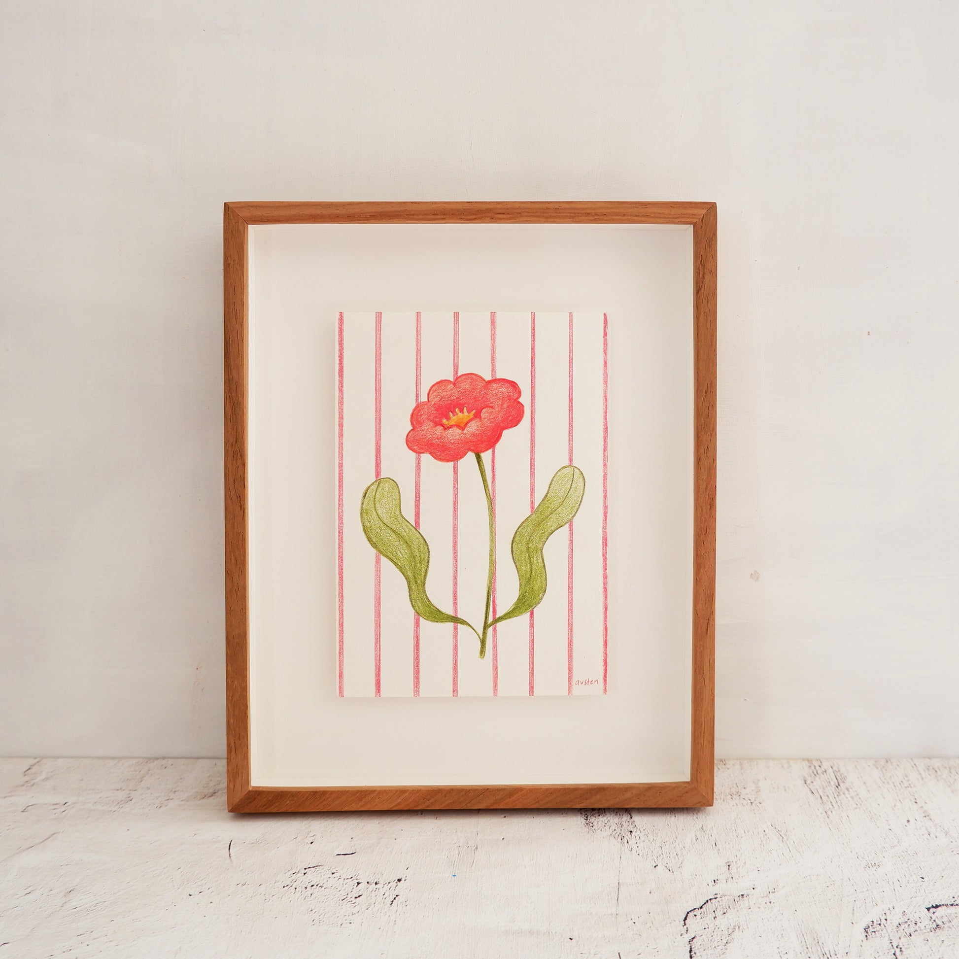 A cheerful study of red flowers, possibly poppies, against a striped background. Made during process work for the collection; 'Year of the flower'.