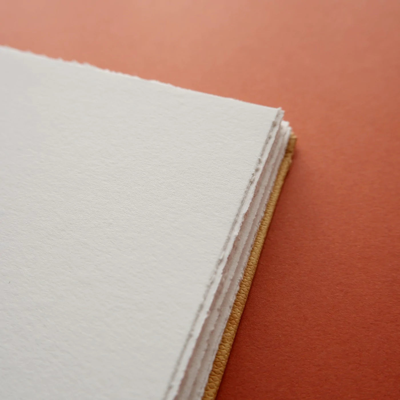 The sketchbook features a cream velvet ribbon bookmark and most pages feature a deckle edge. There are 25 pages in this sketchbook.