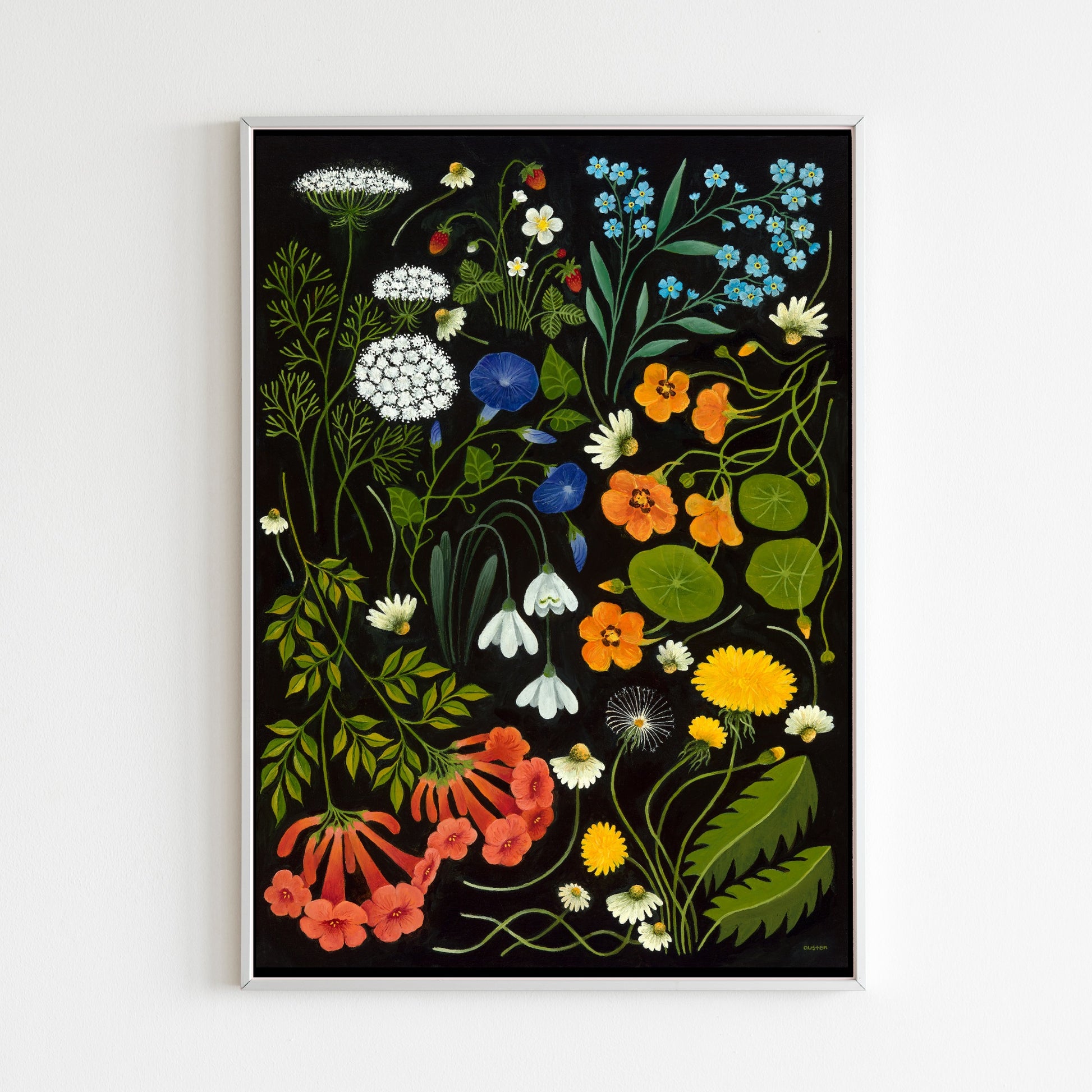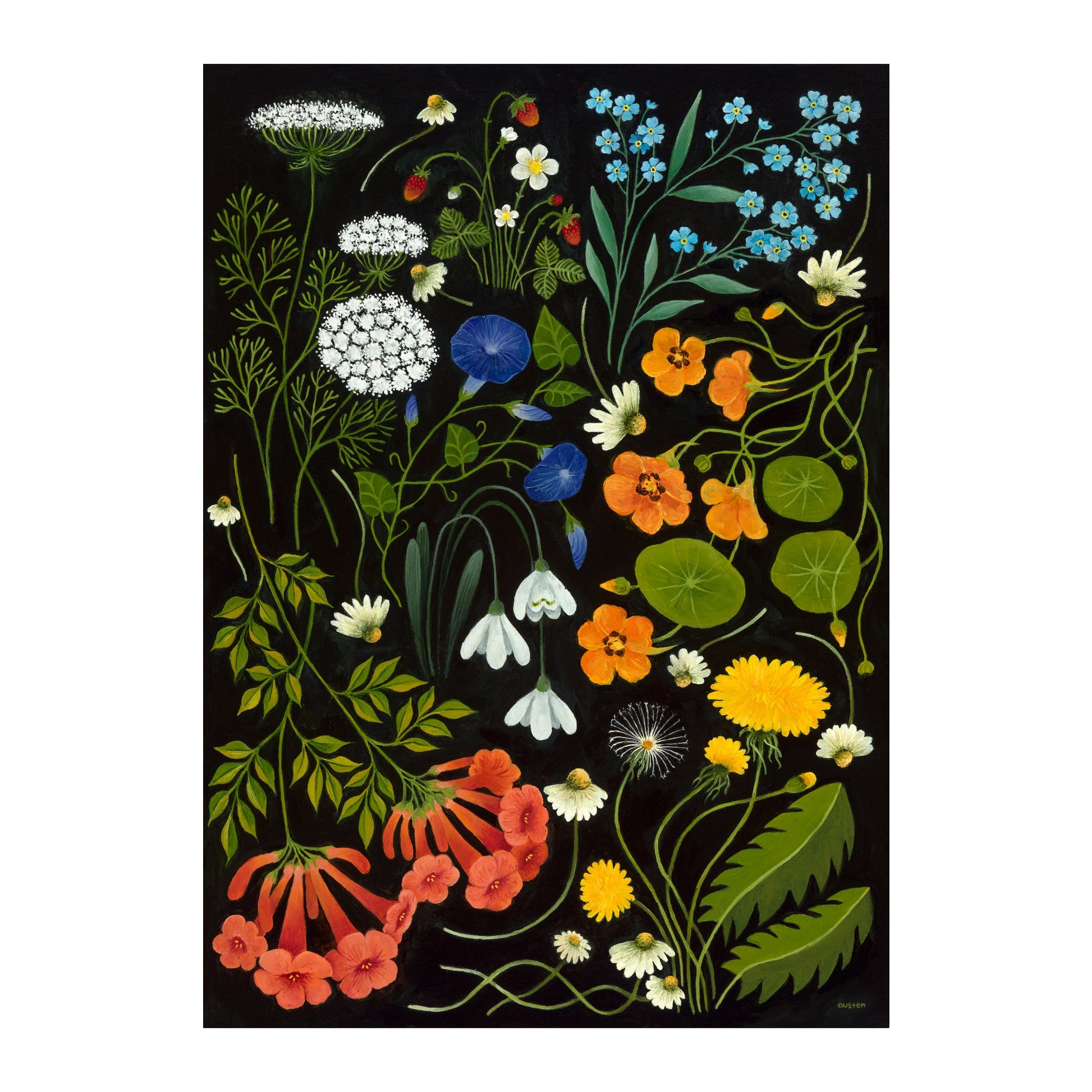 This true to colour fine art print has been carefully printed with certified archival ink on textured medium weight paper. The brushstrokes and texture of the original painting have been skillfully captured while the black background renders in a velvety, matte black look.